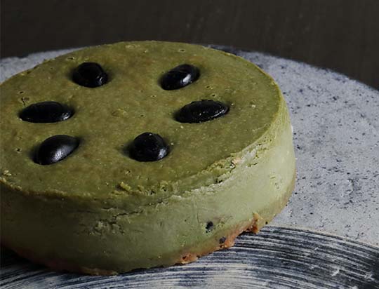 「宇治抹茶」をたっぷり使用した濃厚なチーズと抹茶の上品な香りとほろ苦さ、大粒丹波産黒豆のほっこりやわらかなコクと甘さが顔を出し、厳選された和と洋の織りなす上品で香り高くクリーミーな食感をお楽しみください。
